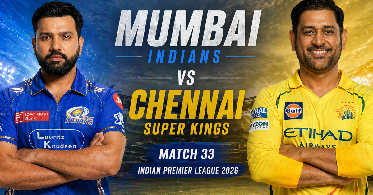 Mumbai Indians (MI) vs Chennai Super Kings (CSK) Match Scorecard IPL 2026 Live Streaming Details: Mumbai Indians won the toss and elected to bowl first against Chennai Super Kings in Match 33 of the Indian Premier League 2026 at the Wankhede Stadium in Mumbai on Thursday, April 23, 2026. MI, led by Hardik Pandya, come into the contest after a dominant win over Gujarat Titans but remain seventh on the points table with four points from six matches. CSK, captained by Ruturaj Gaikwad, are just below them in eighth place, also with two wins from six games, following a defeat to Sunrisers Hyderabad. The live telecast of the match is available on the Star Sports Network. Fans can also stream the match live on the JioHotstar app and website.