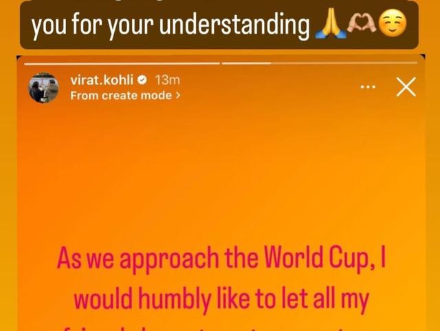 Minutes later, Anushka reshared Virat’s note from her handle, adding a message from her side as well. “And let me just add...please don’t request me to help if your messages get unanswered. Thank you for understanding.” Virat Kohli left the Team India camp on Tuesday and returned to Mumbai briefly for what was described as a ‘personal emergency’. This happened amid rumours and reports claiming that Anushka is pregnant with their second child. Kohli will soon rejoin the Indian team, currently based in Thiruvananthapuram. He will be flying from Mumbai and will then travel to Chennai with the entire contingent on Wednesday.It is learned that Kohli has an important engagement with the International Cricket Council (ICC), the organizers of the World Cup. He will attend this engagement before flying to Chennai, where India will play their opening fixture against Australia on October 8.
