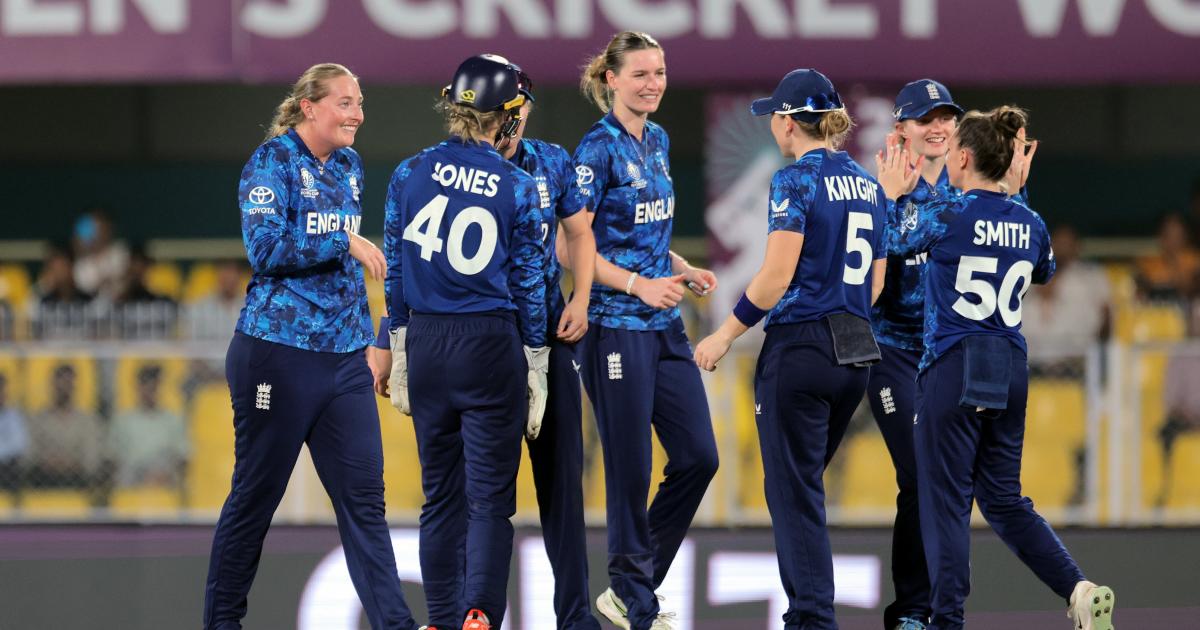 For England, Sophie Ecclestone led the attack with three wickets for 24 runs. Charlie Dean took two wickets for 28, Linsey Smith one for 22, Lauren Bell one for 28, and Alice Capsey two for 31.
