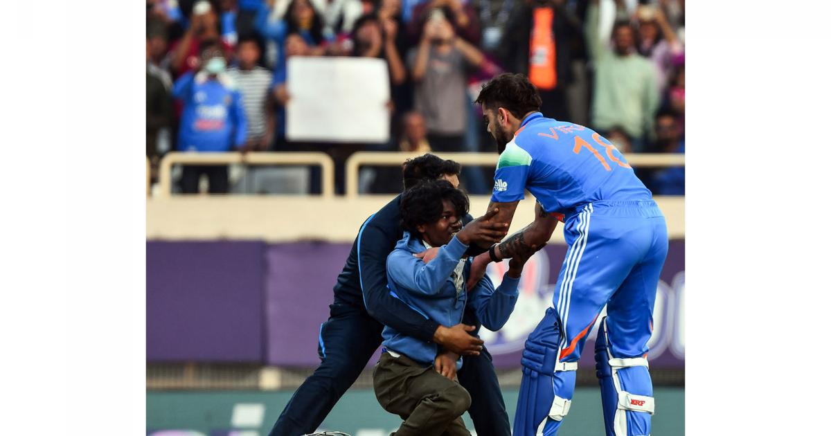 Just after Virat reached the landmark in 102 balls after gliding a Marco Jansen delivery for a four, a fan ran onto the ground, managing to greet Virat by touching his arms before he was removed from the field of play by the security.