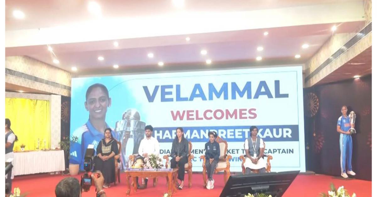 Chennai (Tamil Nadu) [India], November 13 : Indian women's team captain Harmanpreet Kaur was felicitated at Velammal Nexus School in Chennai for her outstanding achievement in leading India to victory in the ICC Women's Cricket World Cup 2025. Under her leadership, the team secured their maiden ODI World Cup title on November 2, defeating South Africa in the final at DY Patil Stadium, Navi Mumbai.