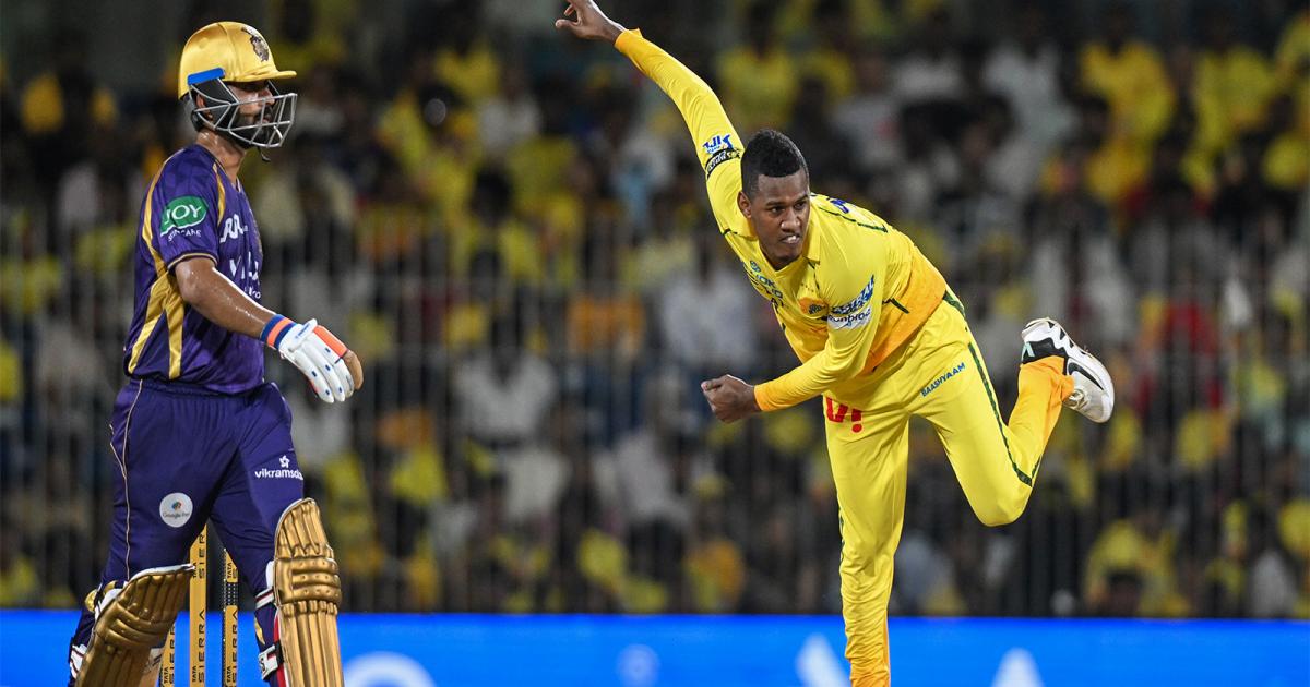 During the chase, KKR was reduced to 29/2 and was in contention with a 50-run stand between skipper Ajinkya Rahane (28 in 22 balls, with two sixes) and Angkrish Raghuvanshi (27 in 19 balls, with three fours and a six). However, a game-changing spell from Noor Ahmed sank KKR to 90/6, and they ended their innings at 160/7.