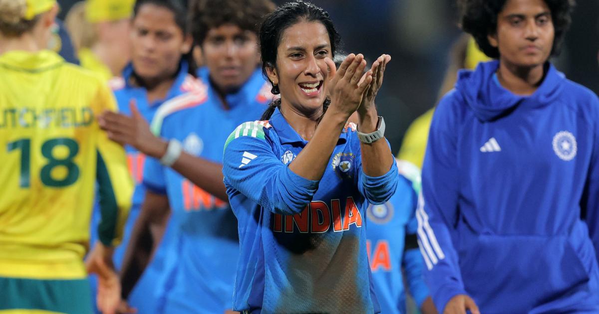 Shree Charani (2/49) and Deepti Sharma (2/73) were among the top bowlers for India. Amanjot Kaur, Kranti Goud and Radha Yadav took a wicket each.