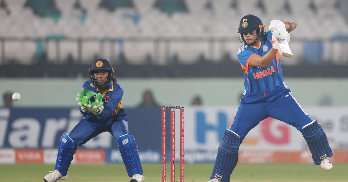 Shafali dominated the powerplay and punished the Sri Lankan bowlers with clean hitting. She brought up her half-century off 27 balls which is the joint second fastest by an Indian woman against Sri Lanka in T20Is.