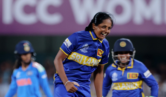 Ranaweera denied Harleen a half-century when the batter fell for 48 off 64 balls after mistiming a shot to extra cover. On the next delivery, Rodrigues was bowled as the ball straightened into her off stump. Ranaweera was briefly on a hat-trick but Deepti Sharma blocked it. However, she struck again with the final ball of the over as Harmanpreet edged behind for 21 off 19 balls.