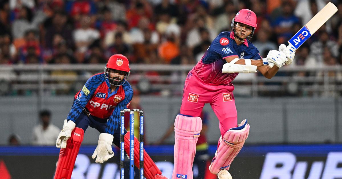 Halfway through, PBKS was 109/2 in 10 overs, with Jaiswal (45*) and skipper Riyan Parag (4*) at the crease.