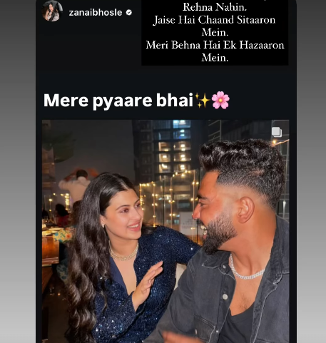 Zanai also shared a photo with Mohammed Siraj on her Instagram story, captioning it, "My dear brother." With these posts, both Zanai and Mohammad Siraj have put an end to the rumours, affirming their bond as a brother-sister relationship.