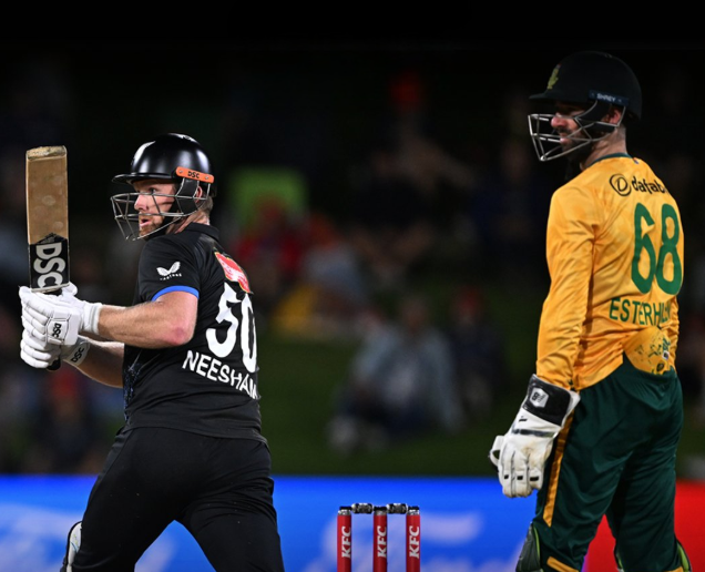 New Zealand national cricket team captain James Neesham won the toss and elected to field against Keshav Maharaj-led South Africa national cricket team in the fifth and final T20 International match of the South Africa tour of New Zealand at Hagley Oval on Wednesday, March 25, 2026.