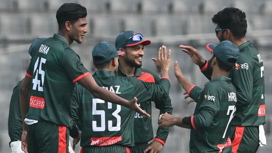 Legspinner Rishad Hossain led Bangladesh’s bowling with three wickets for 56 runs, while Miraz maintained tight control, conceding just 34 runs in his 10 overs.
