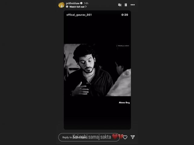 Out-of-favour Indian opener Prithvi Shaw recently shared a cryptic message on his Instagram story, hinting at personal and professional struggles. The post featured a scene from the popular web series Mirzapur, showing a character speaking about how only those who go through hard times truly understand their pain. Shaw captioned it with, "Koi nahi samaj sakta (Nobody can understand)."