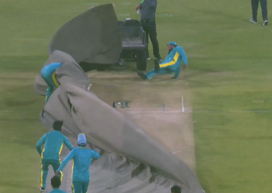 The match, scheduled to begin at 7 p.m. local time, never got underway as persistent rain left the outfield unplayable. Ground crews were seen making repeated efforts to secure the covers and prepare the surface despite worsening weather. The strong winds made it nearly impossible to manage the covers, with visuals showing them flapping violently before being carried across the ground.