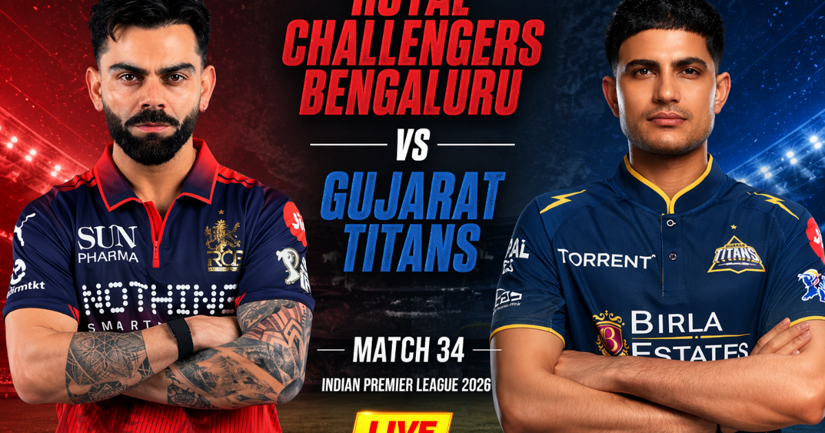 - Match: Royal Challengers Bengaluru vs Gujarat Titans, Match 34, Indian Premier League 2026