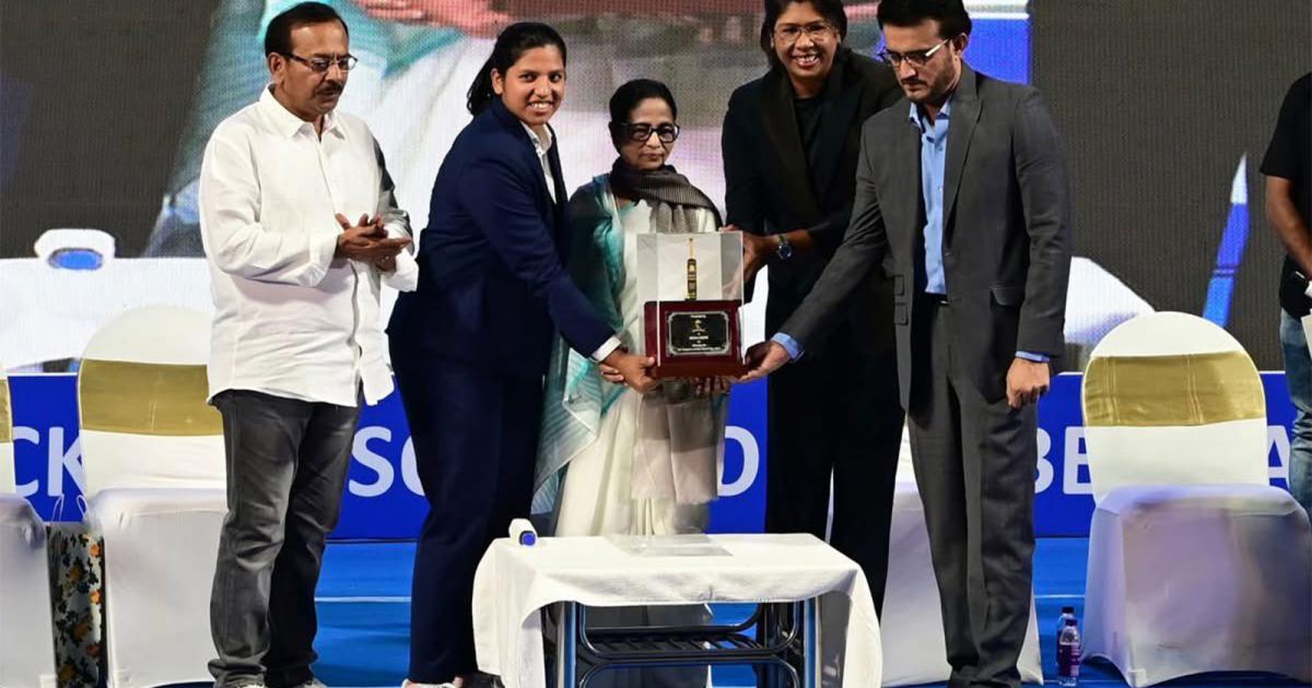 She was given a prize money of Rs 34 lakhs and a golden bat by Ganguly. Indian women's cricket pace legend Jhulan Goswami was also present at the event.