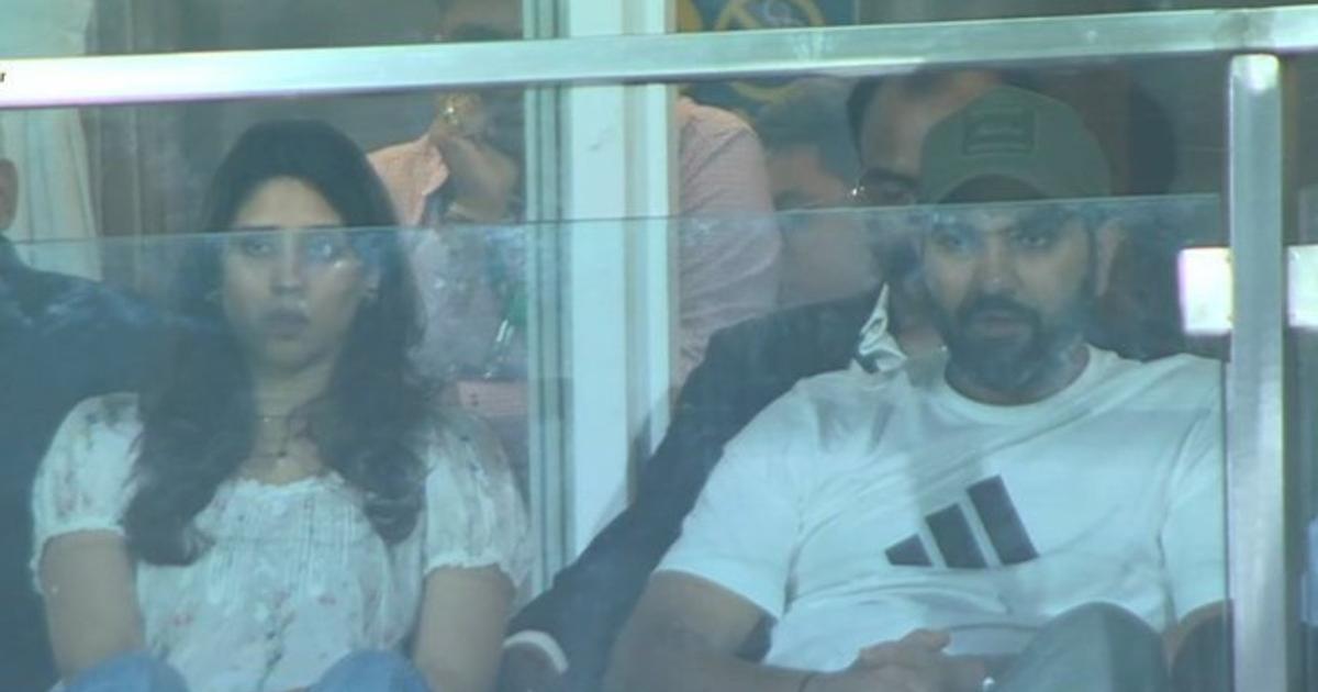 India Women’s National Cricket Team vs South Africa Women’s National Cricket Team Match: Former India captain Rohit Sharma made a special appearance at the DY Patil Stadium on Sunday to cheer for the Indian women’s team in the ICC Women’s World Cup 2025 final against South Africa. Rohit, dressed in a plain white T-shirt, was seen applauding during key moments of India’s innings. He was accompanied by his wife Ritika Sajdeh.