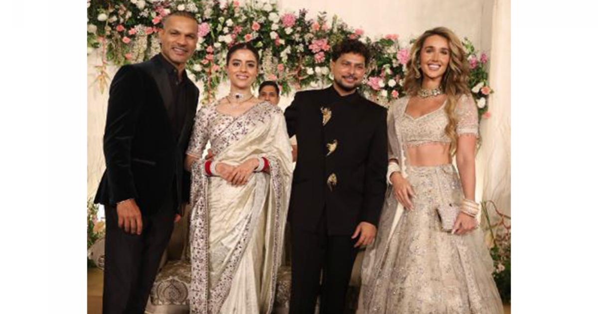In a post on Instagram, Shikhar Dhawan uploaded pictures from Kuldeep's reception and congratulated the Indian spinner and his wife, Vanshika.