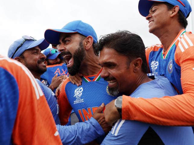 The historic moment when Team India won the ICC Men's T20 World Cup 2024 Final.