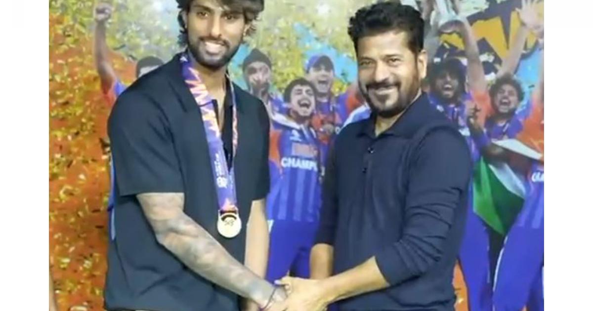 Telangana CM Revanth Reddy felicitates Tilak Varma after India's historic T20WC win
