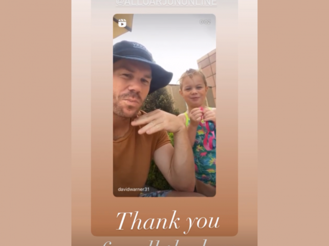 Warner then does Pushpa's Jhukega Nhi pose and his daughter Isla is then heard saying, "Happy Birthday Pushpa."