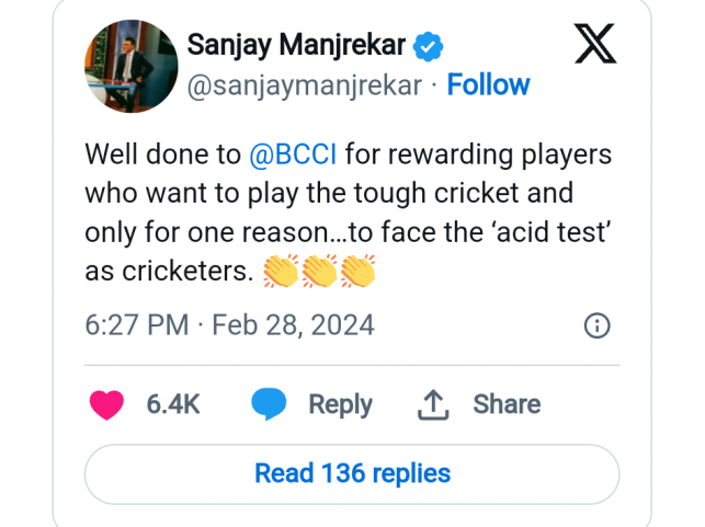 Iyer and Kishan were part of category B and C in the previous season, respectively. Former India player Sanjay Manjrekar applauded BCCI for their tough stand on players refusing to participate in Ranji Trophy. Reacting to the annual contracts list, former India cricketer Sanjay Manjrekar tweeted: “Well done to @BCCI for rewarding players who want to play the tough cricket and only for one reason…to face the ‘acid test’ as cricketers.”