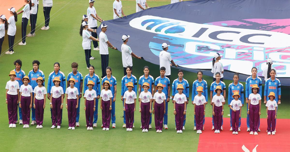 Navi Mumbai (Maharashtra) [India], October 30 : India and Australia players are wearing black armbands during their Women's World ...