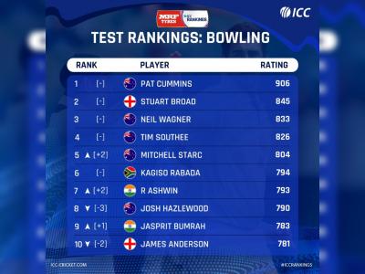 Off-spinner R. Ashwin has moved up two places to seventh while fast bowler Jaspreet Bumrah has moved up to ninth. Ravindra Jadeja, who took three wickets for 57 runs in the second Test, remains third in the all-rounder's list.