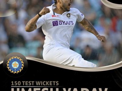 Umesh Yadav picked up the wicket of nightwatchman Craig Overton on Day 2 of the Oval Test in England's first innings to reach 150 wickets in the longest format of the game