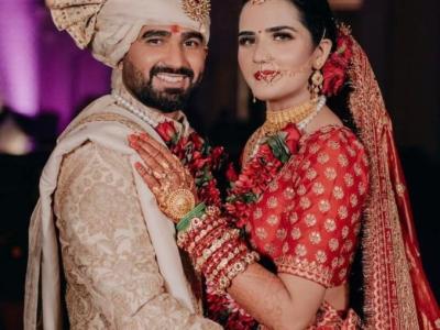 Jaydev Unadkat married his fiancee Rinny in ‘intimate ceremony’ in Gujarat.
