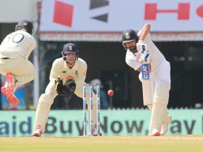 But Rohit carried on, attacking England bowlers at The Chepauk. The 33-year-old first brought up his 12th Test fifty with a four in 47 balls, then six a six to reach 97 in the 38th over.