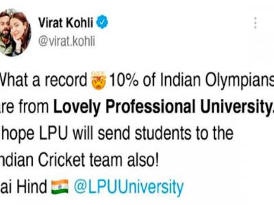 Virat Kohli had written in his post, what a record. About 10% of India's Olympic athletes are from Lovely Professional University. I expect LPU to send its players to the Indian cricket team soon. Jai Hind.