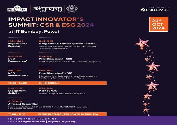 Abhyuday, IIT Bombay's social initiative, is proud to host the Impact Innovator's Summit 2024: CSR and ESG on October ...