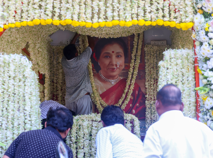 Mumbai, April 13 Several bigwigs of the entertainment industry turned up to bid farewell to the late singing legend Asha Bhosle on Monday.