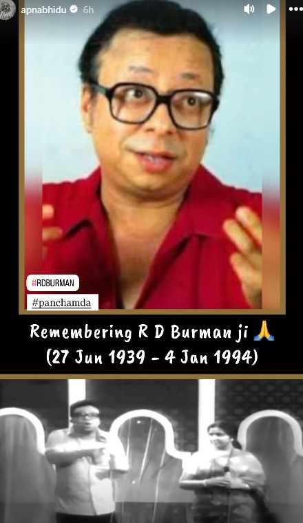 He wrote, "Remembering RD Burman Ji (27 Jun 1939-4 Jan 1994)" accompanied by the folded hands.