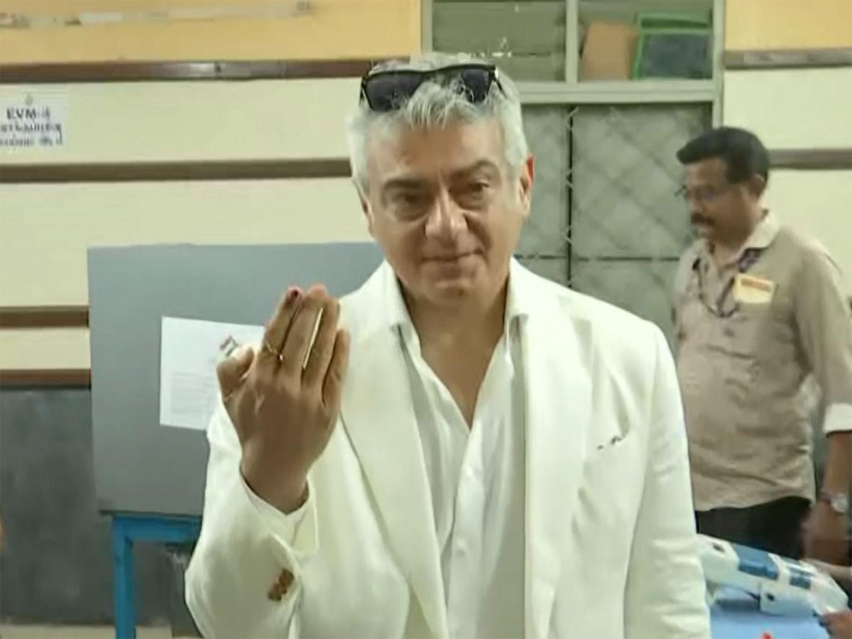Chennai (Tamil Nadu) [India], April 23 : Actor S. Ajith Kumar cast his vote at a polling station in Thiruvanmiyur area of Chennai on Thursday as polling took place across key constituencies.