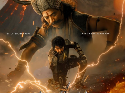 Amid the roaring chaos stands SJ Suryah, transformed beyond recognition with bull-like horns in his crown and a menacing silhouette. His raw tribal armour radiates the ruthlessness of a demon. Kalyan Dasari kneels with unflinching resolve, his eyes ablaze with an unshakable destiny.