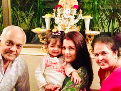 The photo had little Aaradhya flaunting her sweet smile for the camera while in her mom Aishwarya's arm as she posed with her grandparents.