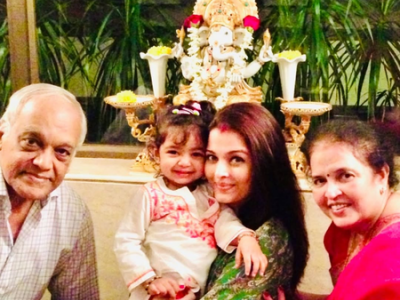 The photo had little Aaradhya flaunting her sweet smile for the camera while in her mom Aishwarya's arm as she posed with her grandparents.