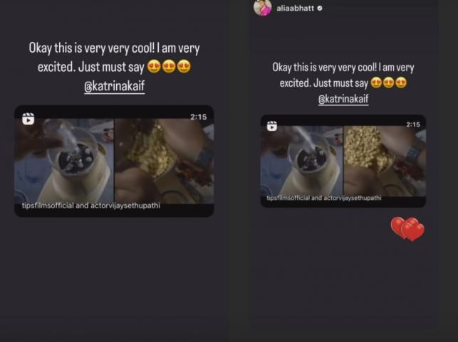 Alia Bhatt and Katrina Kaif, two prominent figures in B-town, often support and promote each other's work, displaying a strong bond and mutual encouragement within the industry. Recently, Katrina Kaif dropped the trailer of her upcoming film Merry Christmas. Kat's besti Alia Bhatt reacted to the trailer which was released on Wednesday. Sharing the trailer on her Instagram story and wrote Okay this is very cool. I am excited,"