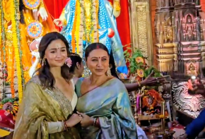 Mumbai, Oct 1 The festive fervour of Durga Puja continues to bring Bollywood's biggest stars under one roof, as Alia Bhatt made a graceful appearance at the North Bombay Durga Puja Pandal.