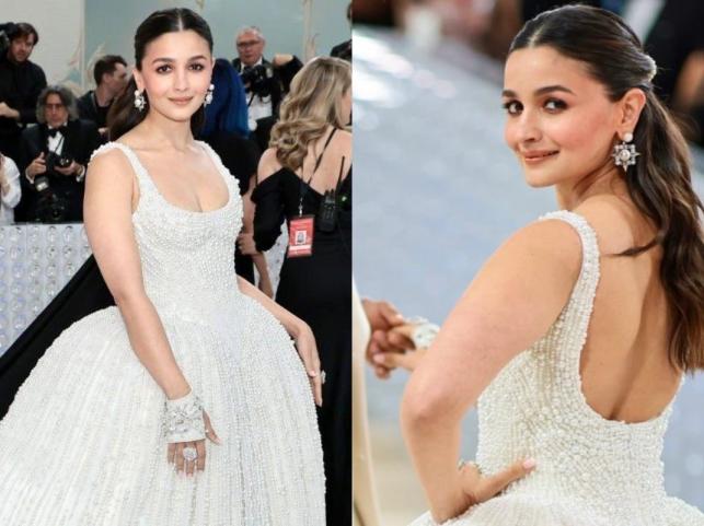 Bollywood star Alia Bhatt made an impressive debut at the 2023 Met Gala.Alia wore an atelier Prabal Gurung ivory silk tulle and satin face organza exaggerated basque waist ball gown with hand-beaded pearls.For her maiden appearance at the 'fashion's biggest night', the Indian star said she wanted to wear something that felt authentic and was "proudly made in India".