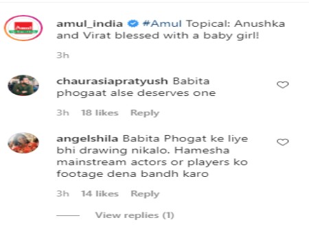 However, after the image went viral, many of them trolled the popular diary brand for being biased as netizens demanded a doodle for wrestler Babita Phoogat who was also blessed with a baby boy. A user while commenting on the creativity wrote, Babita Phogat ke liye bhi drawing nikalo. Hamesha mainstream actors or players ko footage dena bandh karo. Another user wrote, Why only Anushka and Virat and why not Babita Phogat. A number of them expressed their unhappiness on the image, as they felt, Babita Phogat also deserved a doodle image.
