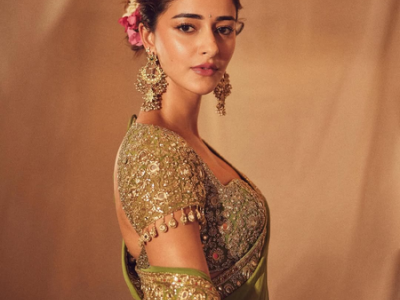 Dressed in a dark leaf green saree with a delicately embroidered golden blouse, adding fresh flowers to her hair and pairing her outfit with classy accessories, Ananya captioned the post as, “It’s starting to look a lot like my favourite time of the year.”