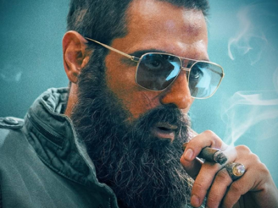 Arjun looks absolutely deadly with an unflinching stare, dense beard, a cigar in his hand, fire in his eyes, and a rugged demeanour.