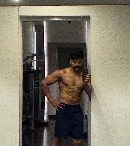 Taking to his Instagram page, Arya had posted a picture of his well toned body and written,"Rain Rain pls stay away .. can't hold this forever. #Vettuvam Climax continues @ranjithpa"