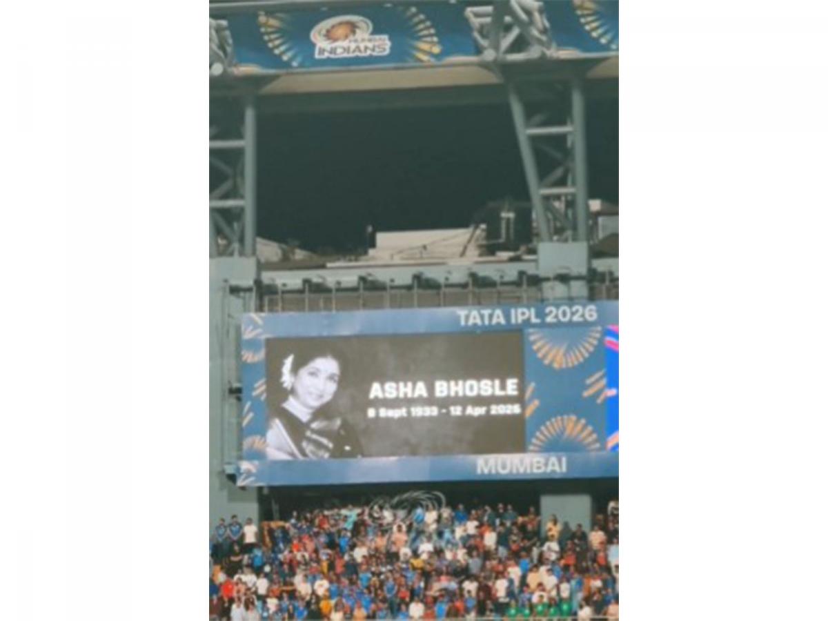 Mumbai (Maharashtra) [India], April 12 : A moment of silence was observed at the Wankhede Stadium ahead of the marquee Indian Premier League (IPL) match between five-time champions Mumbai Indians (MI) and defending champions, Royal Challengers Bengaluru, as a mark of respect to legendary Indian singer Asha Bhosle, who passed away in Mumbai earlier today.