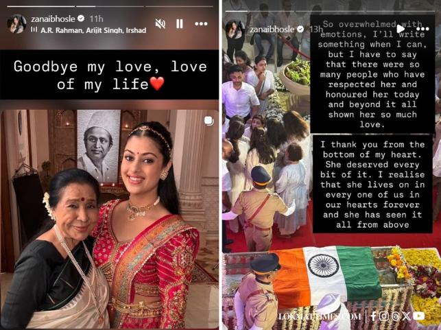 Industry gave a farewell to Legendary Singer Asha Bhosle, on Monday April 13, 2026 at Shivaji Park Crematorium in Dadar. On Tuesday, grand daughter Zanai posted Instagram story and also shared a video of them and wrote a long note.