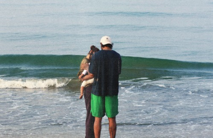 The couple posted a sweet picture from the shoreline, where Rahul and Athiya can be seen holding their daughter closely.