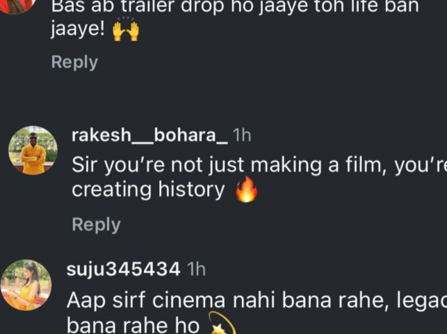 Expressing views about the biopic, Om Raut and his collaboration with Dhanush, one netizen wrote, "Aap sirf cinema nahi bana rahe, legacy bana rahe ho," while another wrote, "Ek aur iconic story aapke haathon se! Proud moment sir." A comment read, "Sir, you're not just making a film, you're creating history," and another read, "Visual storytelling ka agla level lag raha hai already." A user wrote, "Definitely Om Raut's direction is gonna rock in this movie," and another wrote, "Iss baar bhi aapne kamaal kar diya sir! Can't wait."