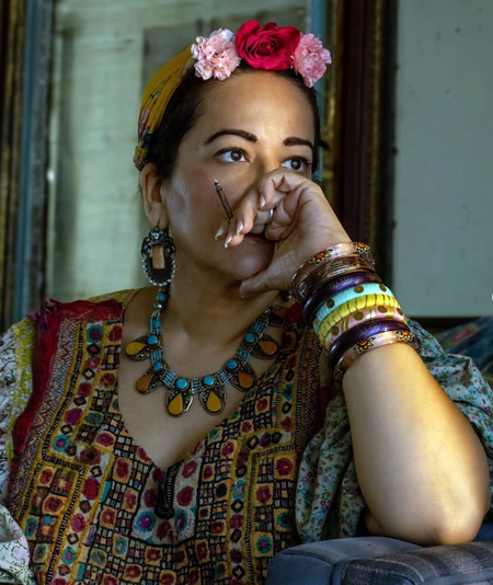 Ayesha styled herself as Freida Kahlo, sporting her iconic look like the floral headpiece, chunky necklace and vibrant yet bold coloured ensembles. She shared her look on Instagram with a slew of images of her holding a cigarette.