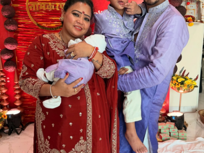 Revealing the name of their newborn on social media, Bharti dropped a couple of photos from what seemed to be a pooja ceremony. While Bharti opted for a red salwar Kameez for the occasion, Harssh and their elder son Gola twinned in matching kurta pajamas.