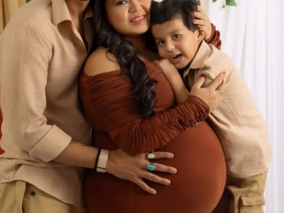 While Harsh and Golla were seen twinning in matching attire in these family photos, Bharti flaunted her pregnancy glow in a brown off-shoulder dress.